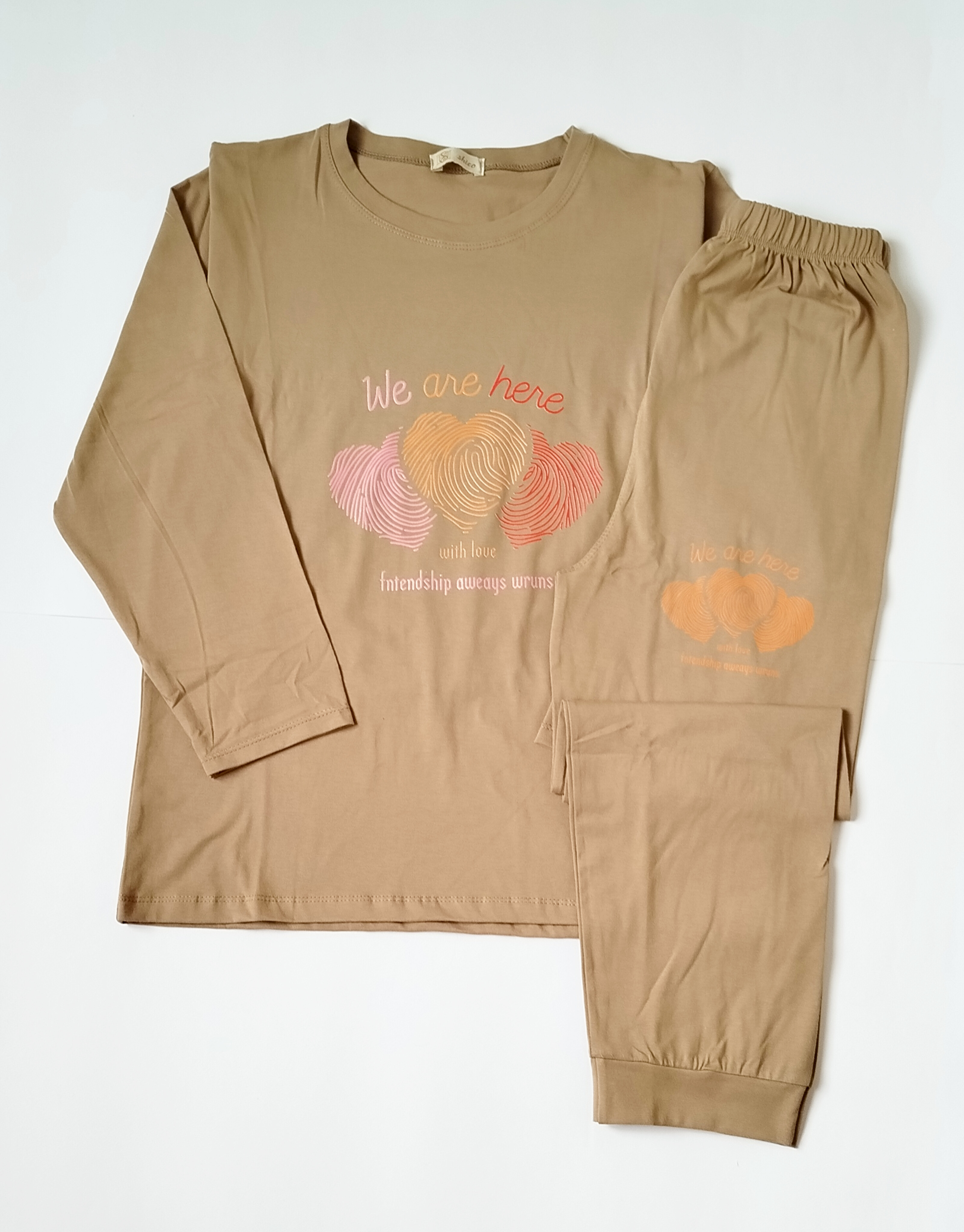 بلوز و شلوار ست نخ پنبه زنانه طرح قلب اثر انگشتی کد ۲۱۵۱