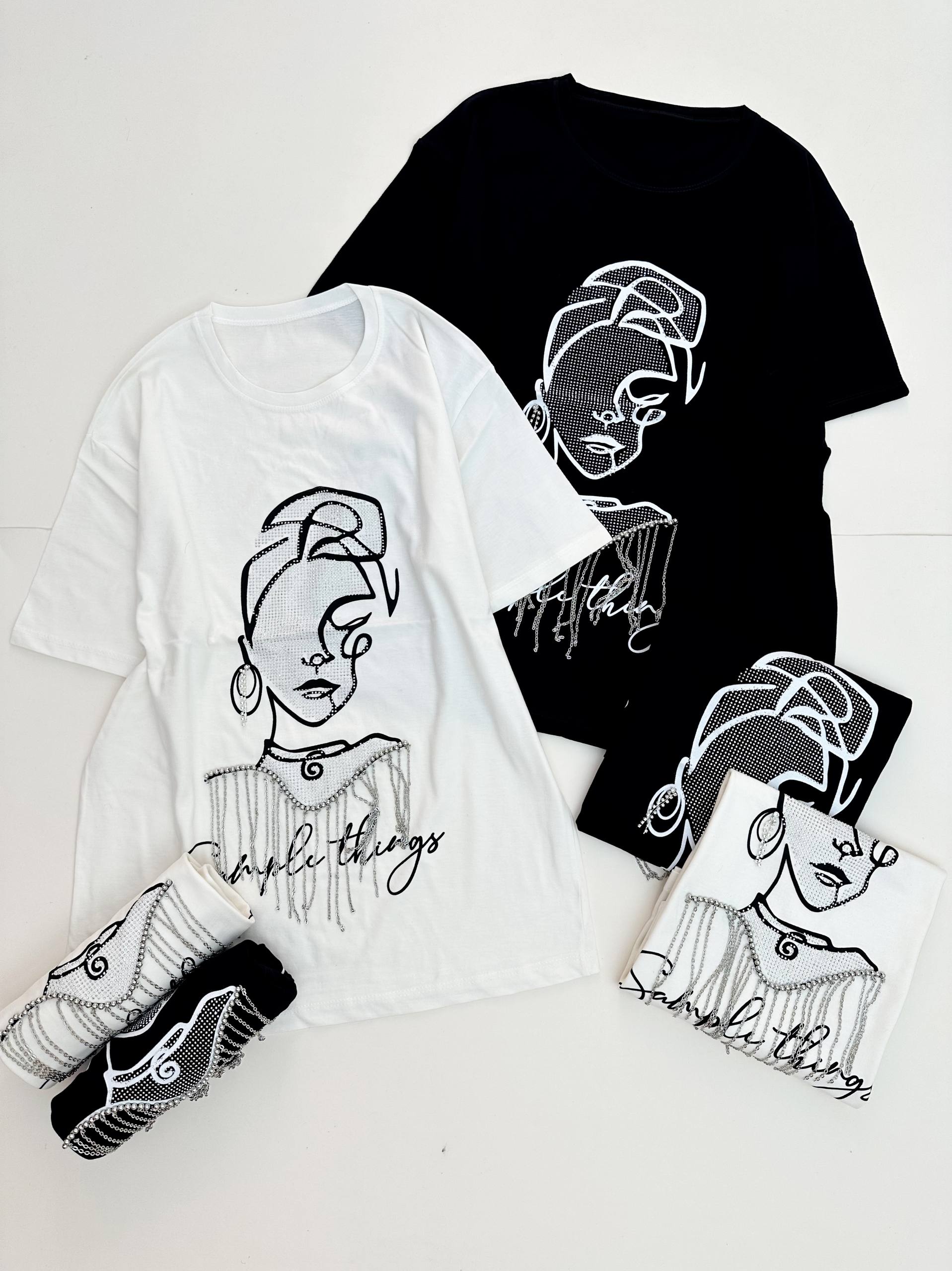 تیشرت زنانه نخ پنبه نگین دار طرح چهره کد ۲۰۹۲