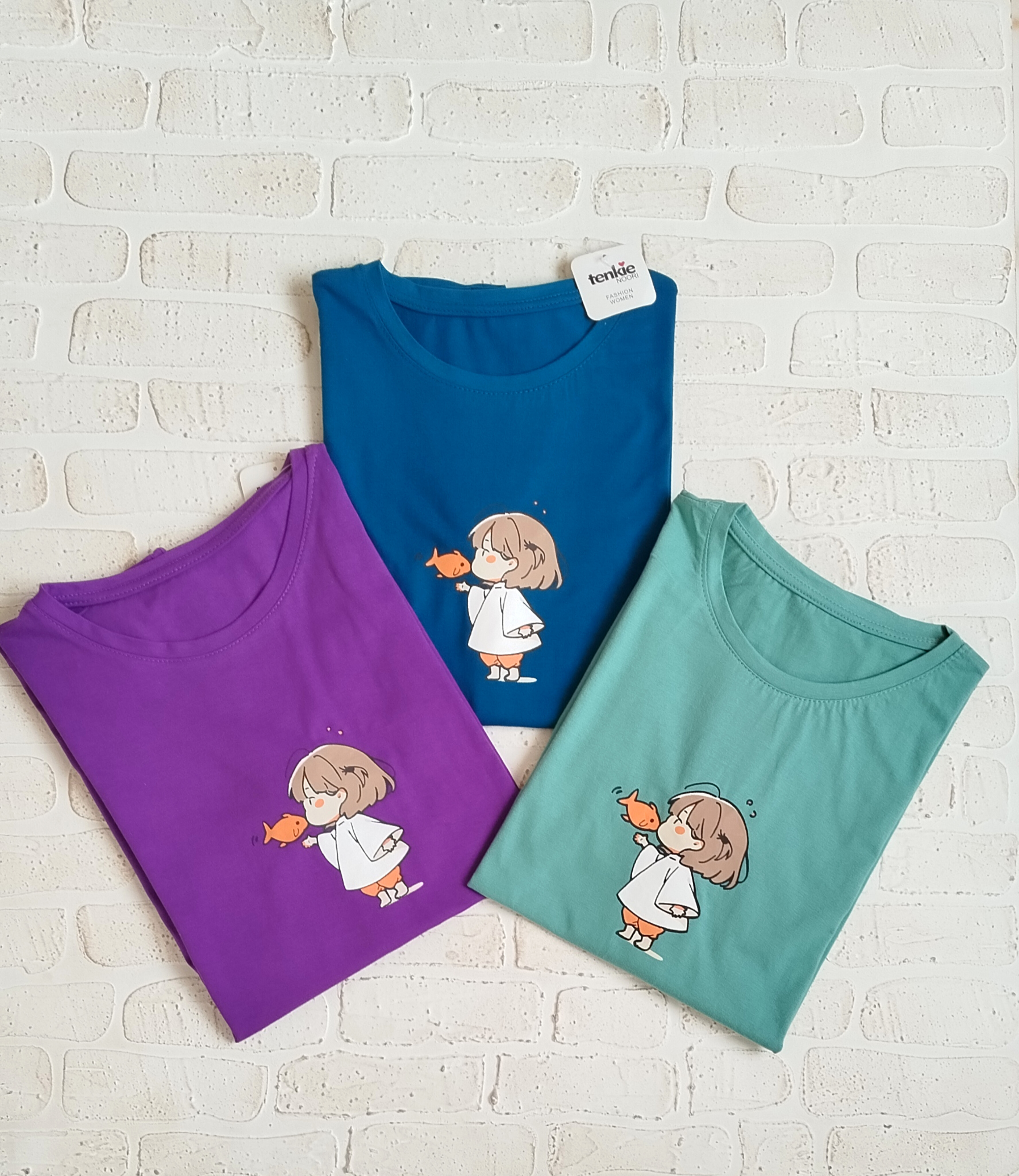 تیشرت باکسی زنانه سایز قواره دار عالی جنس نخ پنبه طرح کیوت و جذاب سایز مناسب 36تا 48 رنگبندی عالی چاپ اصلا ریزش ندارد