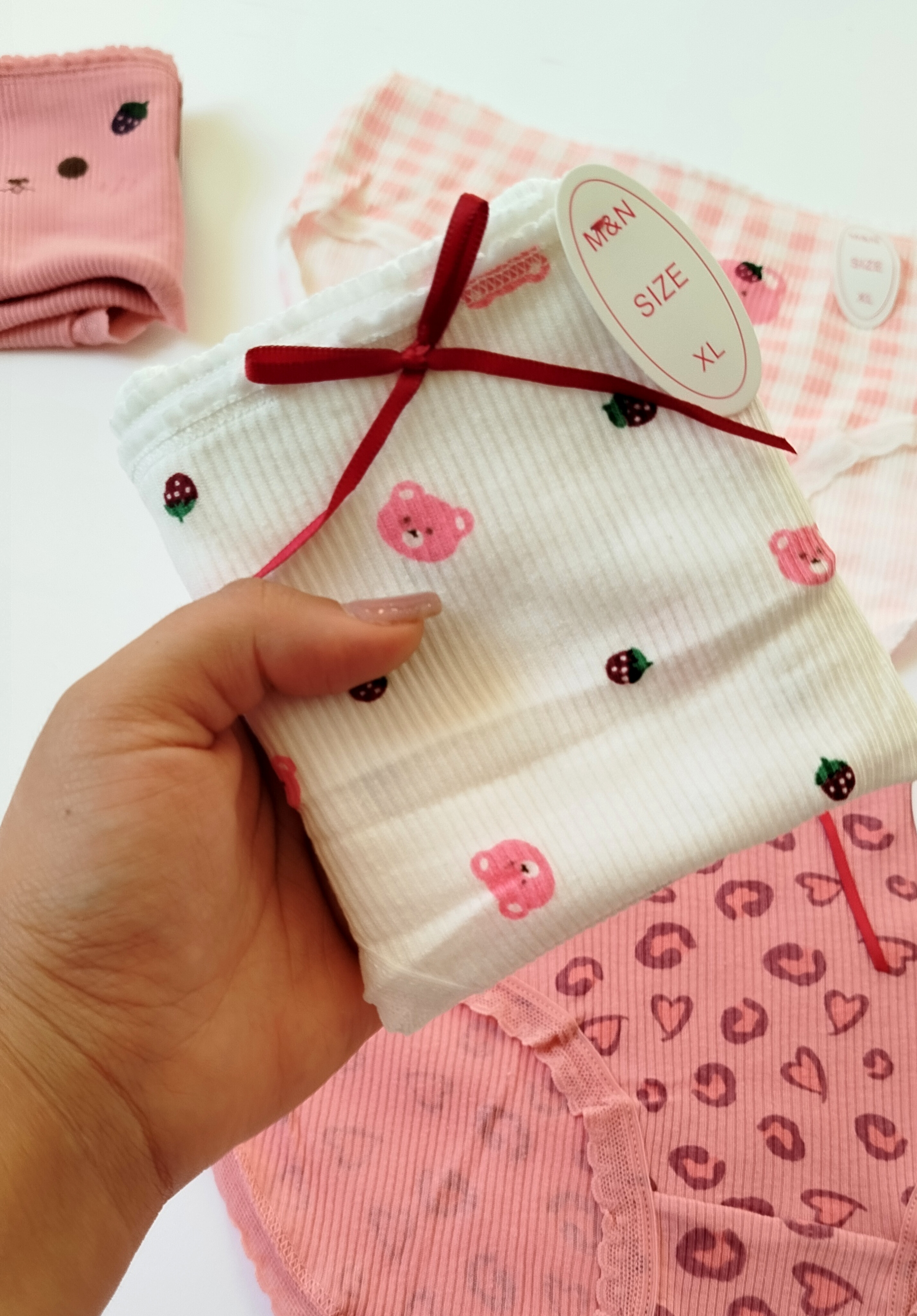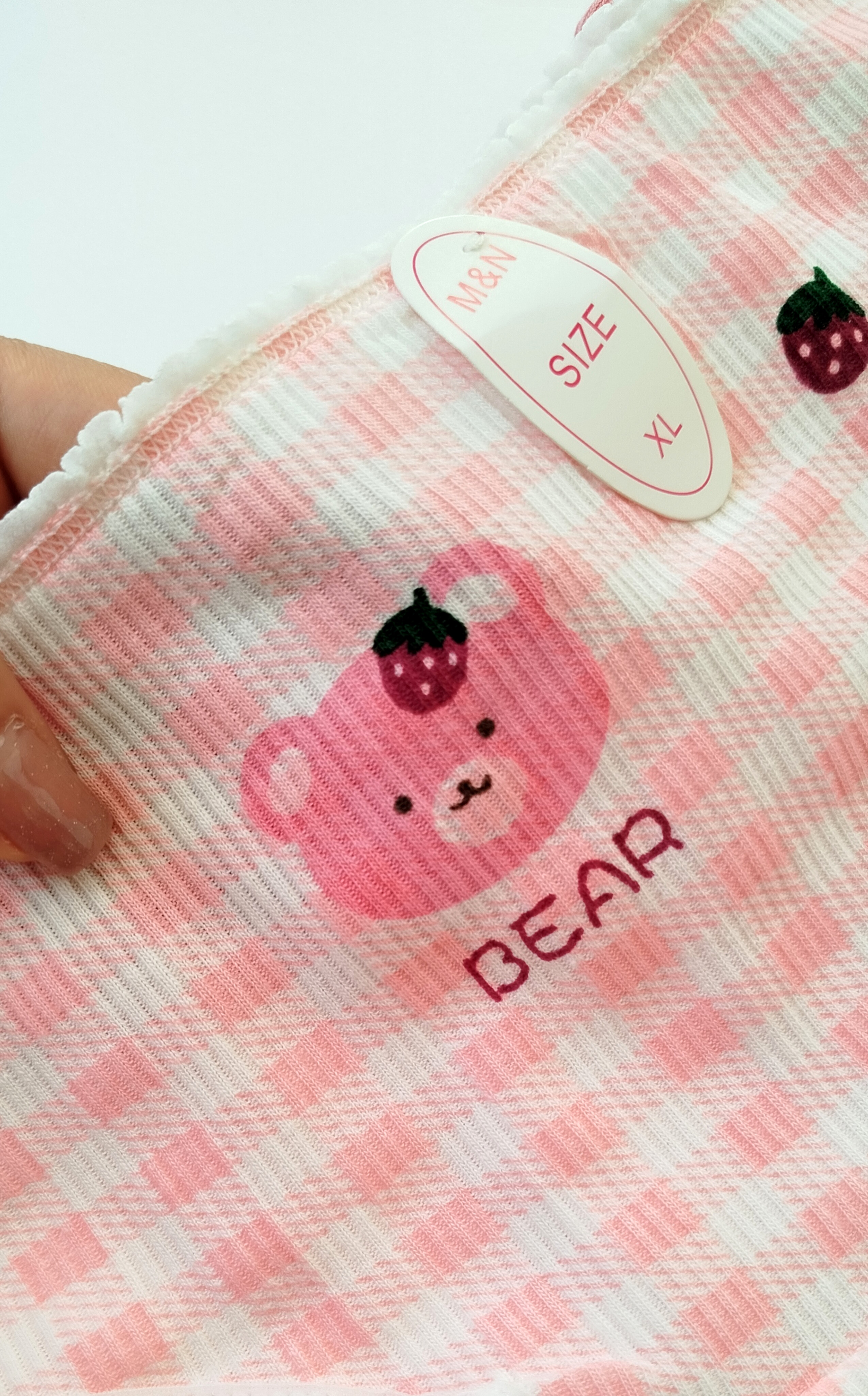 شورت وارداتی فانتزی طرح خرس و توت فرنگی کد 1101