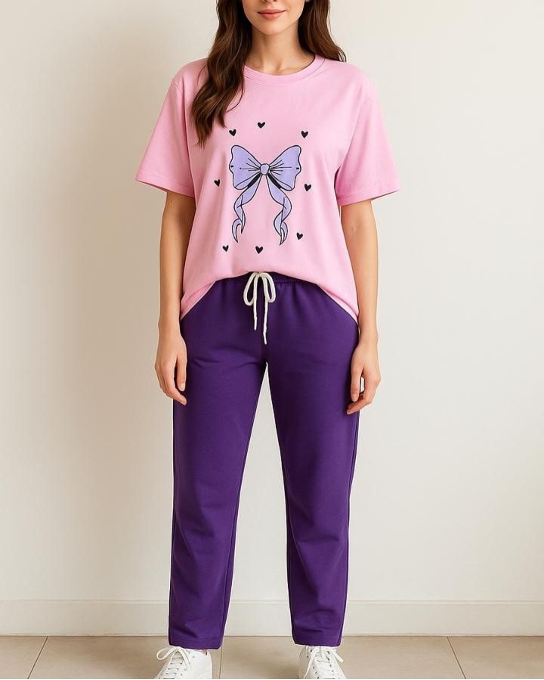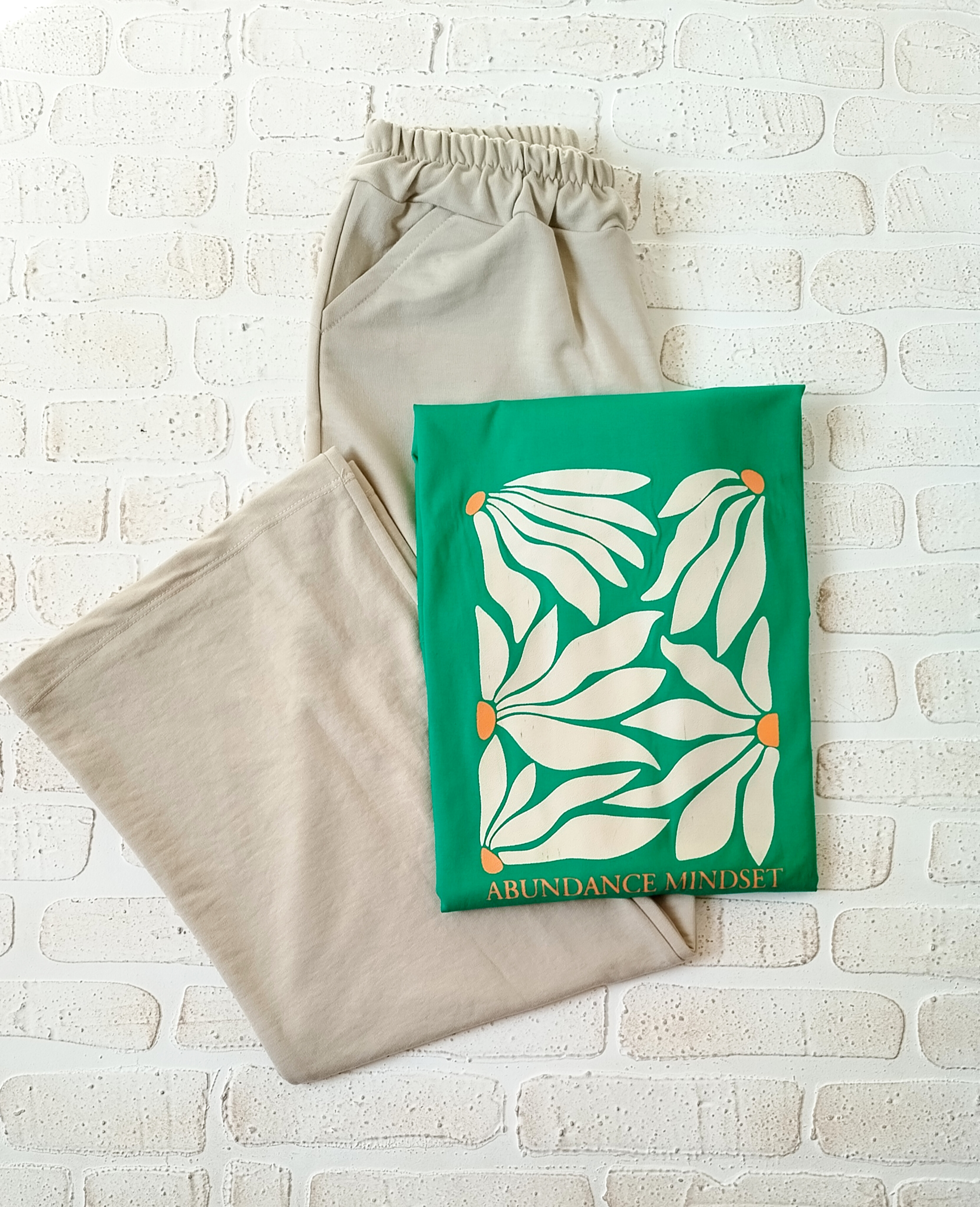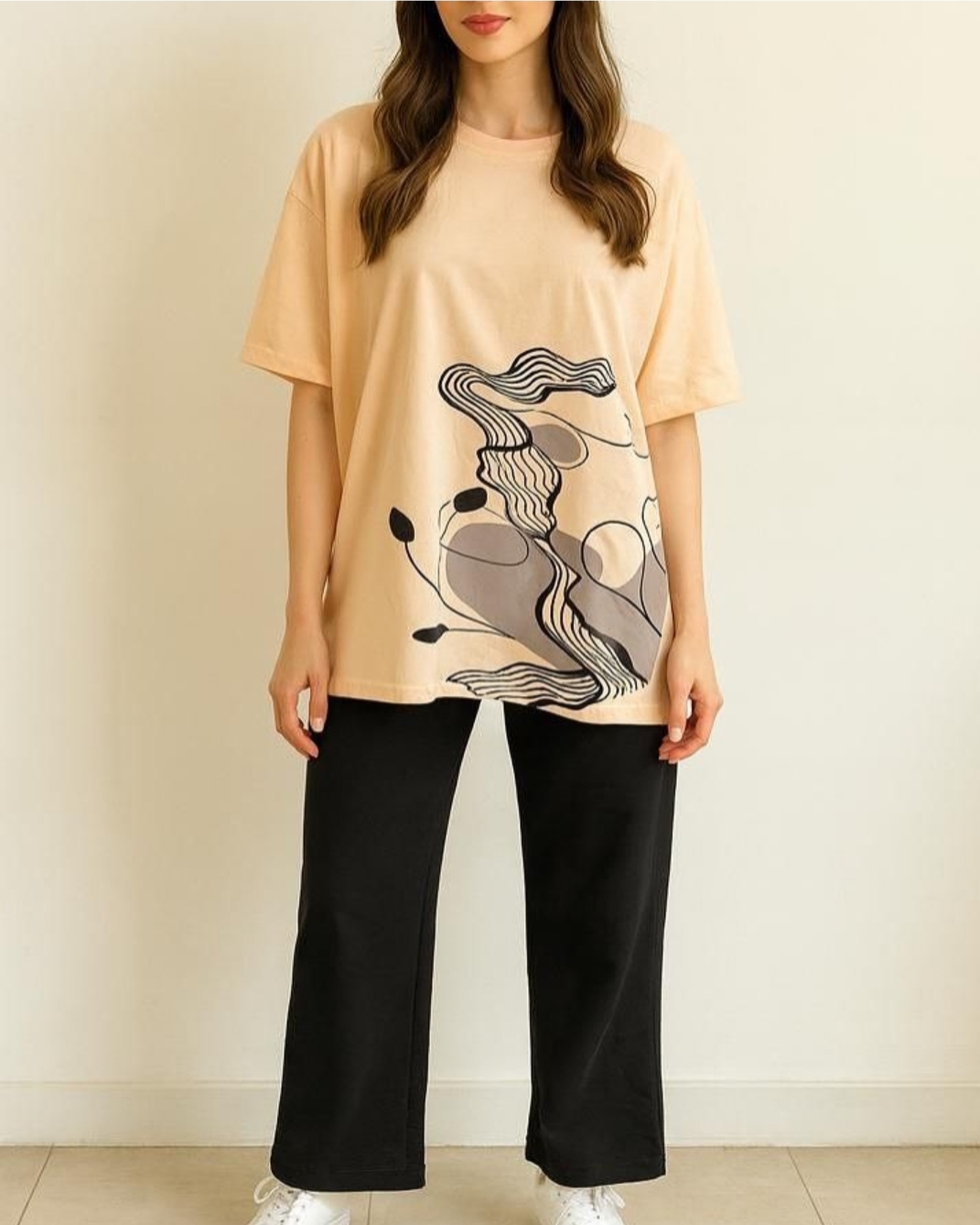 تیشرت و شلوار قواره بزرگ تیشرت لانگ و شلوار بگ جنس تیشرت نخ پنبه جنس شلوار پنبه لاکراه که زانو نمیندازه مناسب سایز ۴۰ تا ۵۰ بسیار عالی و باکیفیت