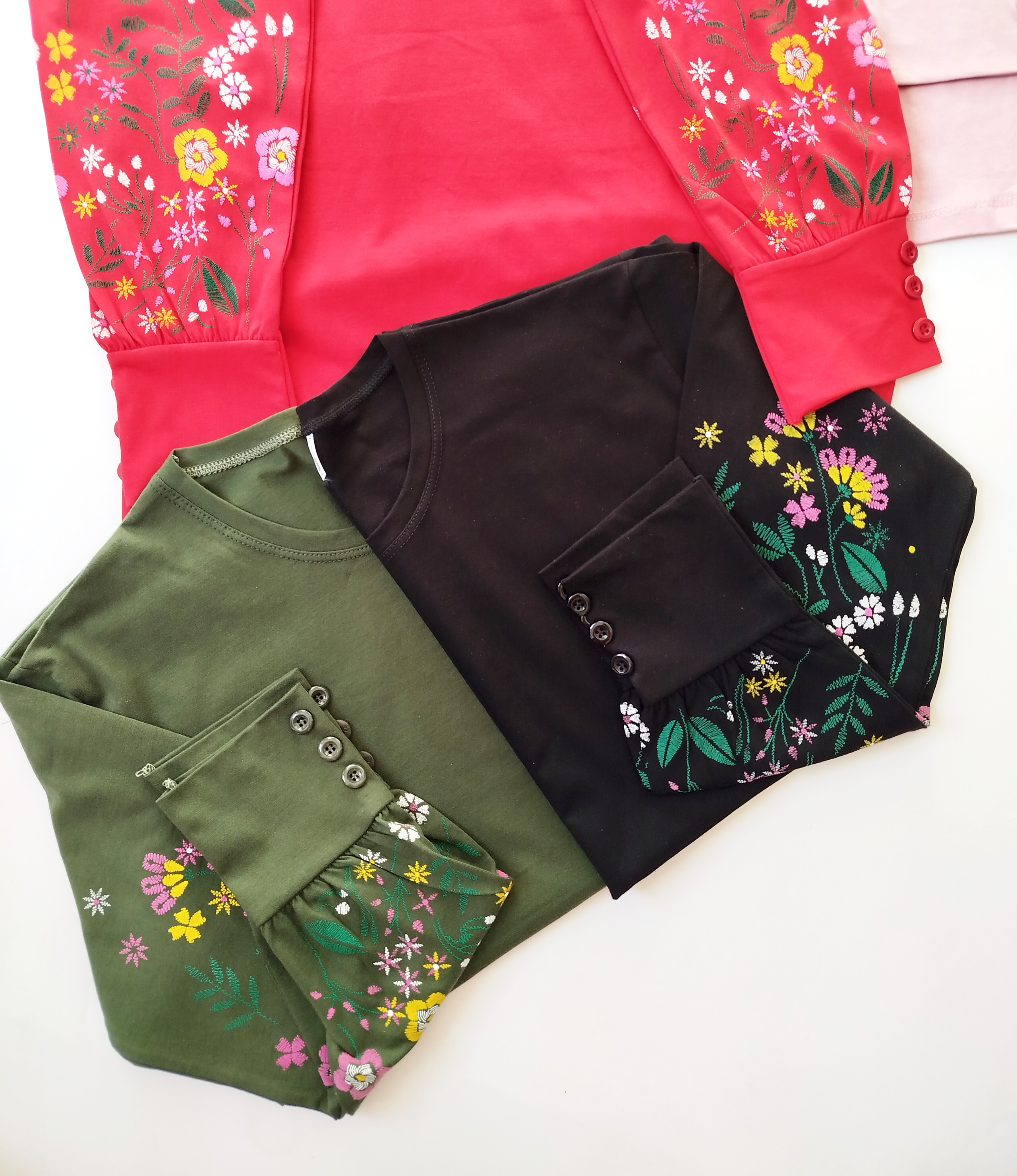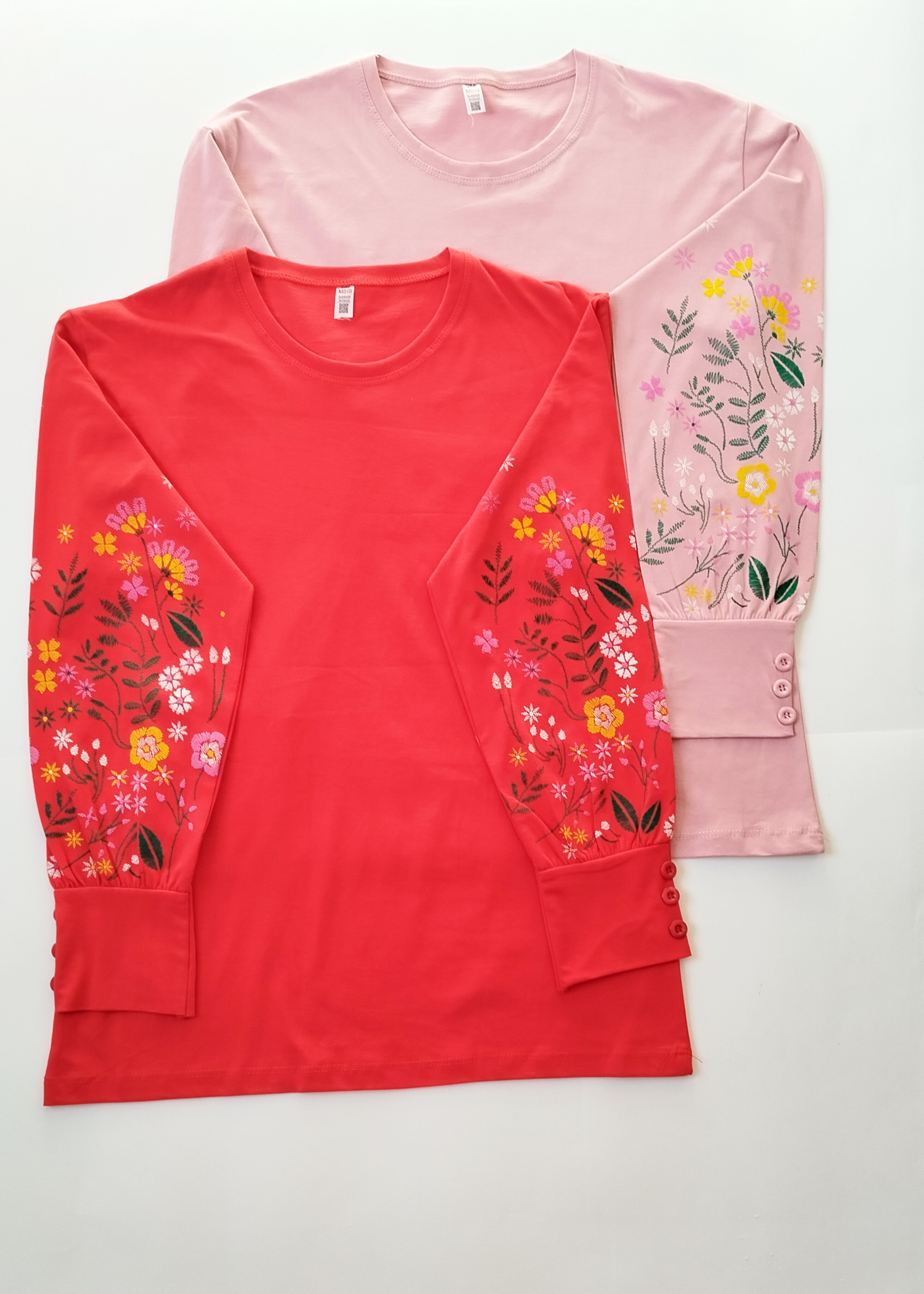 بلوز آستین بلند زنانه با چاپ پفکی مدل گلایل در رنگبندی عالی و جذاب جنس نخ پنبه مناسب سایز 36تا46 کیفیت عالی چاپ پفکی بدون ریزش سر آستین مچی