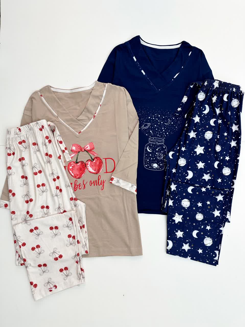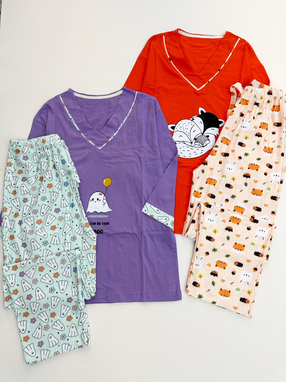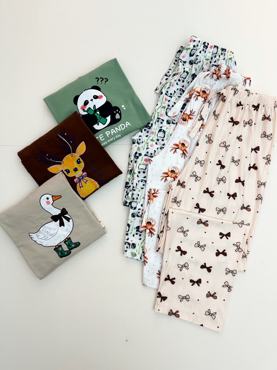ست تیشرت و شلوار زنانه عروسکی جنس تیشرت نخ پنبه جنس شلوار پنبه لاکرا(زانو نمی اندازد) سایز فری مناسب سایز ۳۶ تا ۴۸ یقه هفت آستین سه ربع یه کار شیک و راحت عیدانه